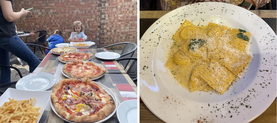 Don’t miss the ravioli—especially the Devon crab or ricotta and spinach varieties. The seafood risotto and tagliata are fan favorites. For dessert, the tiramisu is a must-try.