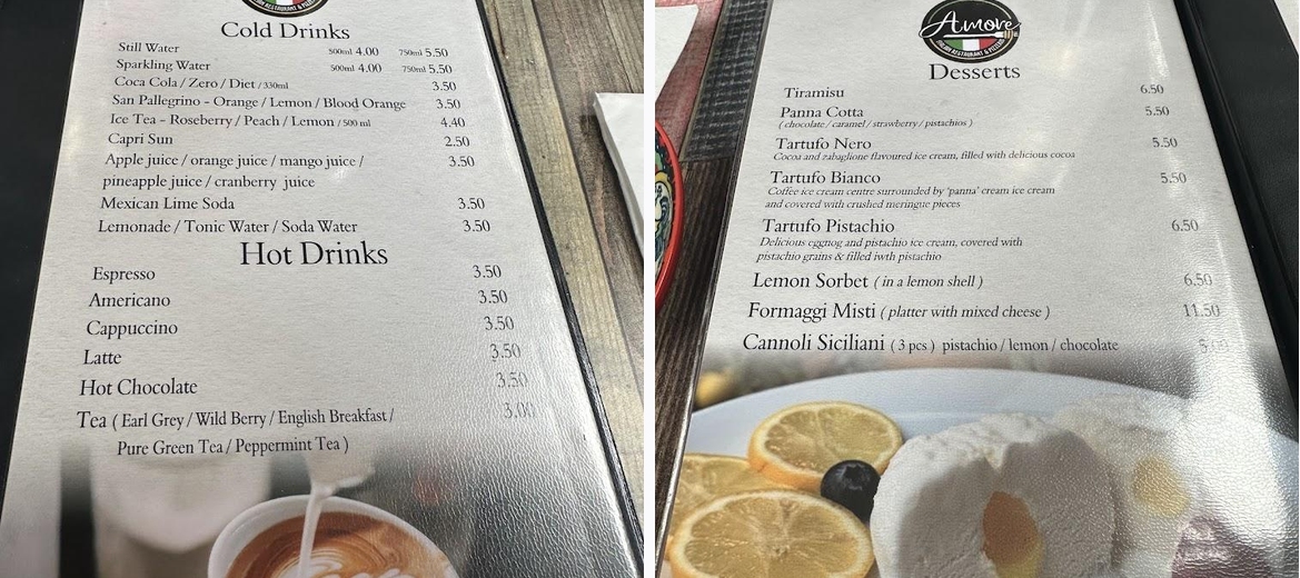 Amore – A True Culinary Gem in Rochester Set in a cosy old English building with wooden ceilings and rustic charm, Amore truly lives up to its recent title as Best Restaurant in Medway. We started with nocellara olives and bresaola with rocket and Parmigiano — fresh and flavourful. The tagliata was excellent, but the beef liver stole the show — without doubt, the best I’ve ever had. Rich, tender, perfectly cooked. I cleared the plate! And was a huge one ! We enjoyed a few glasses of Primitivo and Malbec, yet the house wine impressed us so much, we bought a bottle to take home. Dessert? Cannoli — crisp, light, and delicious. The atmosphere is relaxed and welcoming, and the staff — especially Anna, the owner, Teodor and Giuseppe — were absolutely fantastic. Friendly, attentive, and full of heart. Thank you for their warmth and top-notch service. Huge credit to the chef, Cristian , whose skill and dedication shine through in every bite. A truly memorable evening. Can’t wait to return.