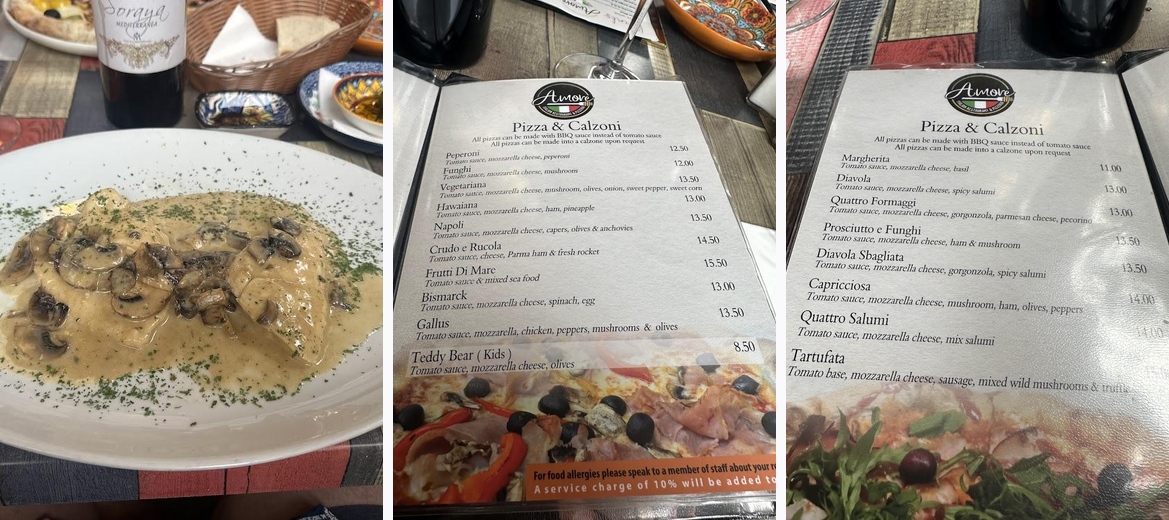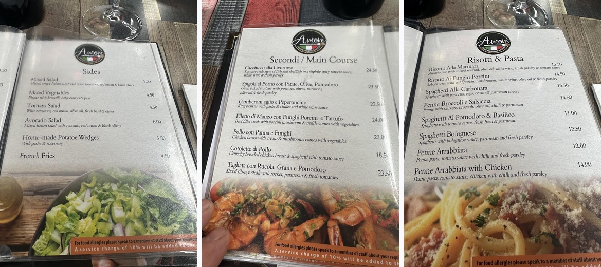 We booked a table at the Amore because we were recommended it by some friends 🙂 this is an absolute gem of a restaurant and definitely a traditional Italian 🇮🇹 The service is great. The food is absolutely delicious and the staff are friendly and helpful and there is a very chilled atmosphere 😃 it was a nice evening so we chose to sit in the garden which is a great little space 👍 we would definitely recommend this restaurant to others and we have already booked to return to have another meal there 😃 we are definitely very happy customers 😎